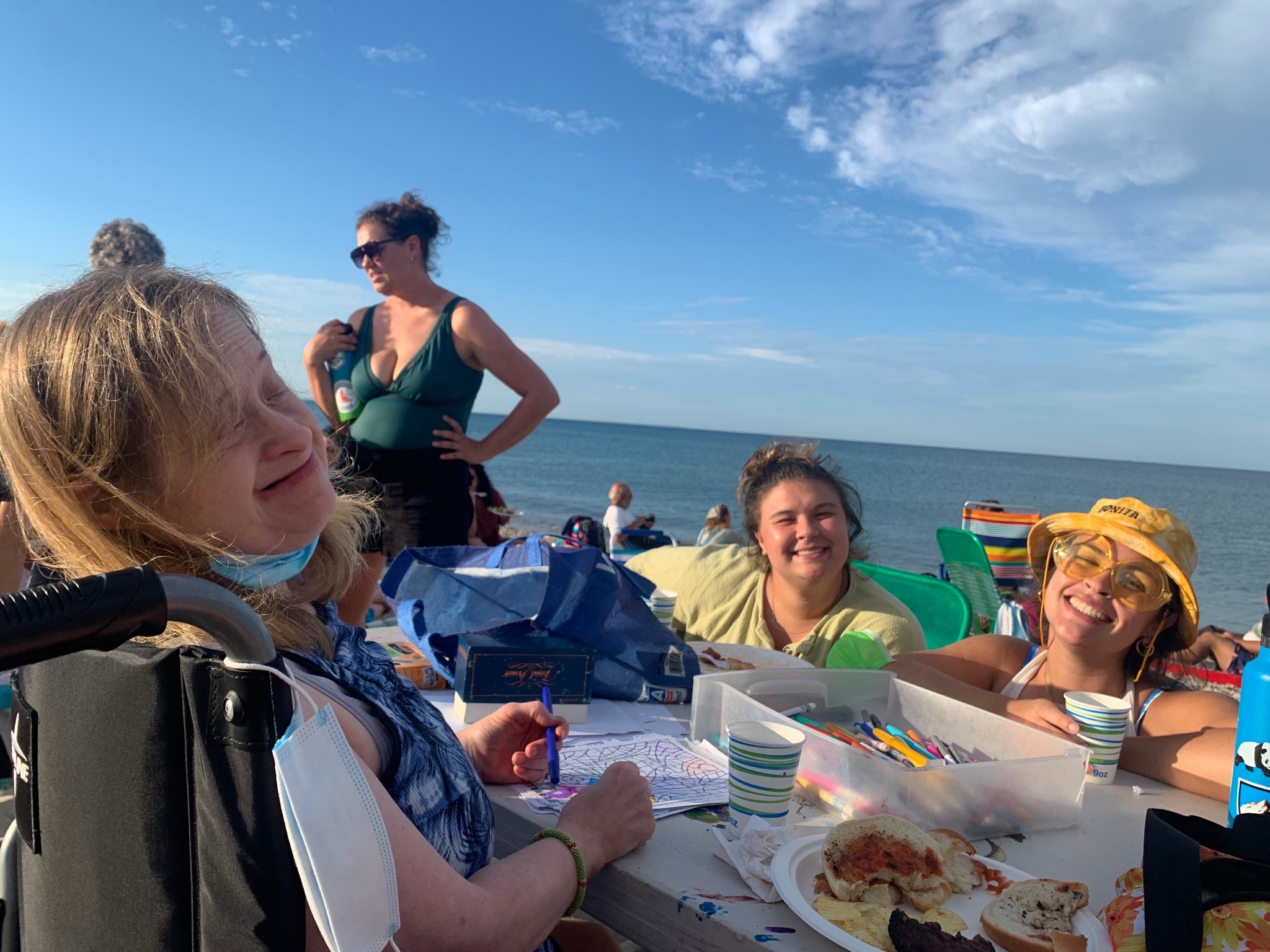 The biplaners had lunch a little late and then after lunch we had a rest period and now we are on our way to drumming on the beach. We ate hamburgers, cheese burgers, hot dogs. Past salad and chips. And now we are listening to the drummers. And then we will head back to camp and go to bed.